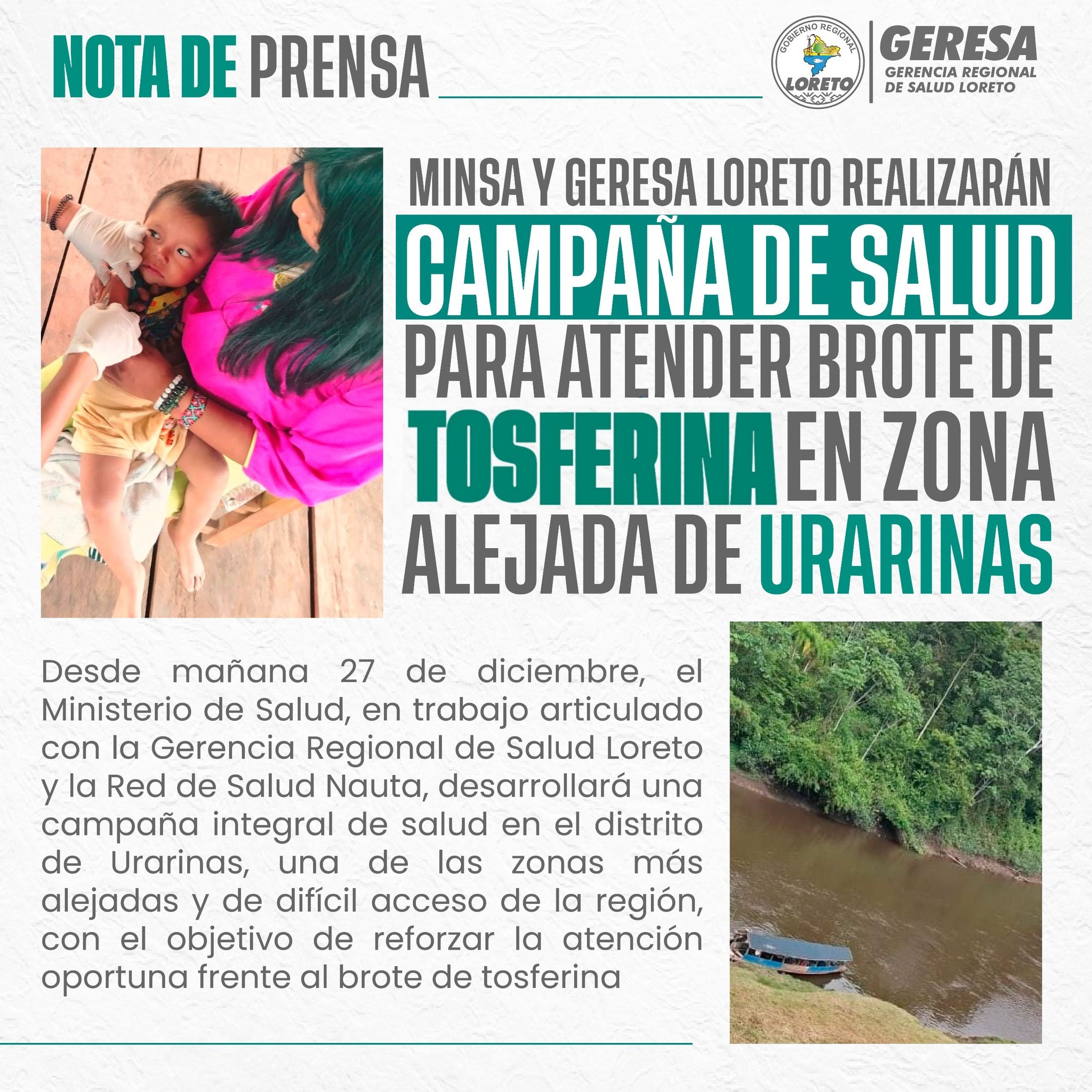 🔴MINSA Y GERESA LORETO REALIZARÁN CAMPAÑA DE SALUD PARA ATENDER BROTE DE TOSFERINA EN ZONA ALEJADA DE URARINAS